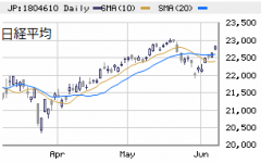□ 日経平均(大引け) 22,823円 +197、トランプ警戒 < 好テクニカル